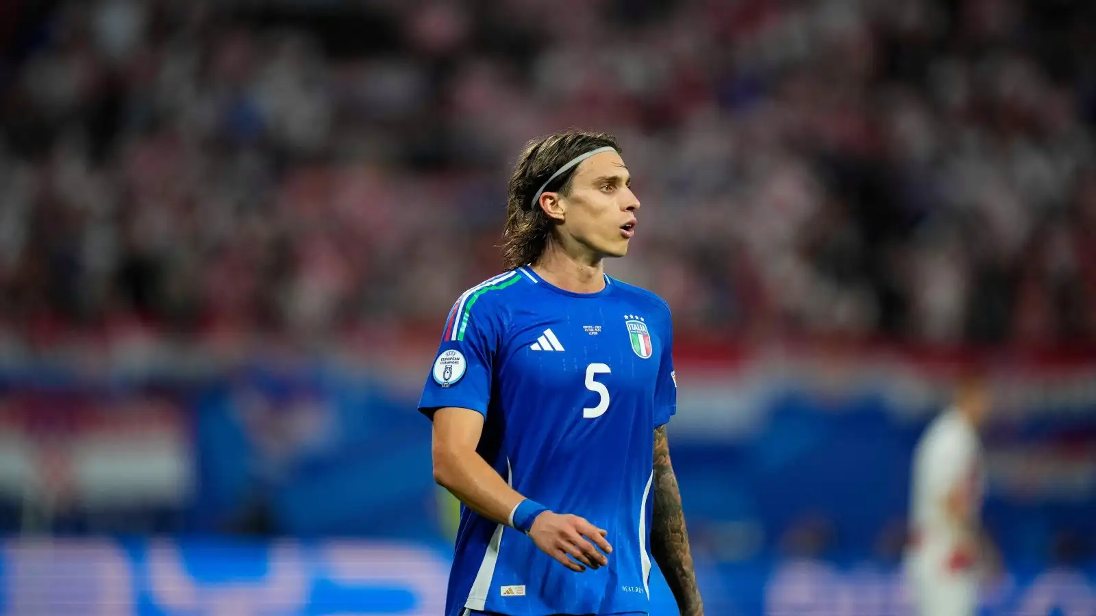 When he wasn’t being thirsted over for his drop-dead gorgeous looks and the fact he resembles an Italian defender of the 2000s with his long hair, Calafiori was dropping imperious performances at the back for the Azzurri, proving integral in them making it out of the group stage.