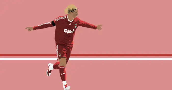 Flowing dyed bleach blonde hair, the classic collaboration of Liverpool red and Adidas design, the frightening speed, accuracy and confidence that made him a fantasy team legend – this is the type of goal that should make Gary Neville moan like male talent in an adult film, not some walk-in against Barcelona that he’s only scored because he’s too knackered to get back and defend.