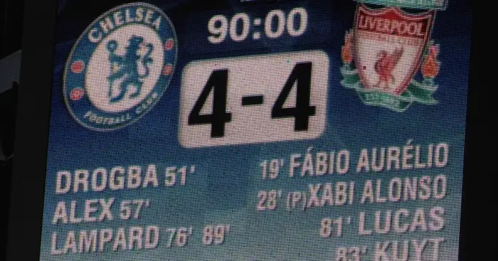Frank Lampard made it 3-2 on the night, but the visitors went ahead once more thanks to goals from Lucas Leiva and Dirk Kuyt. With Liverpool just one goal away from a stunning comeback, Lampard finally killed off their hopes in the 89th minute.