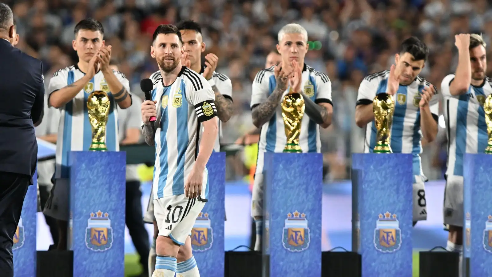 “First of all, thank you for all the love we’ve been receiving, not only since becoming world champions but also since we won the Copa America. We said for a long time that we were going to do everything for this [the World Cup]…”