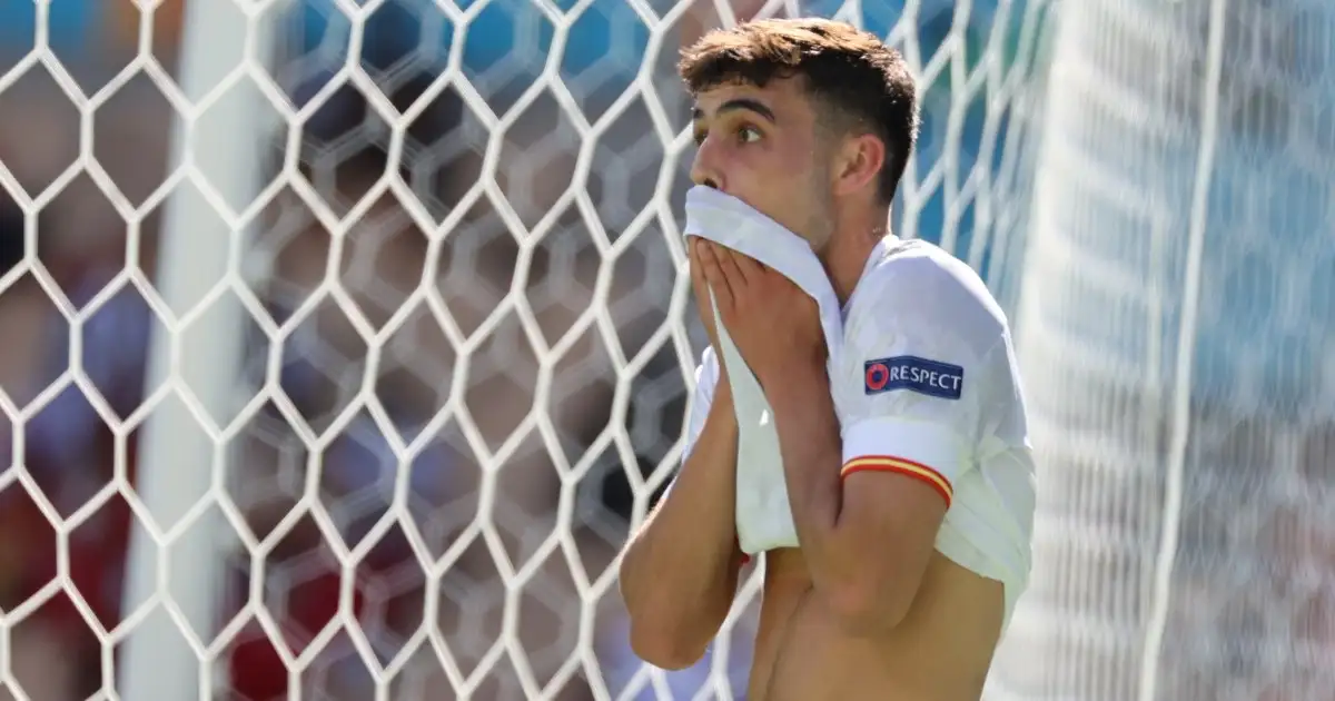 Receiving the ball from Aymeric Laporte, Pedri decided to ping a spinning, bouncing first-time pass towards his goalkeeper Unai Simon, whose attempt to control it saw it bounce off his right boot and into the back of his net.